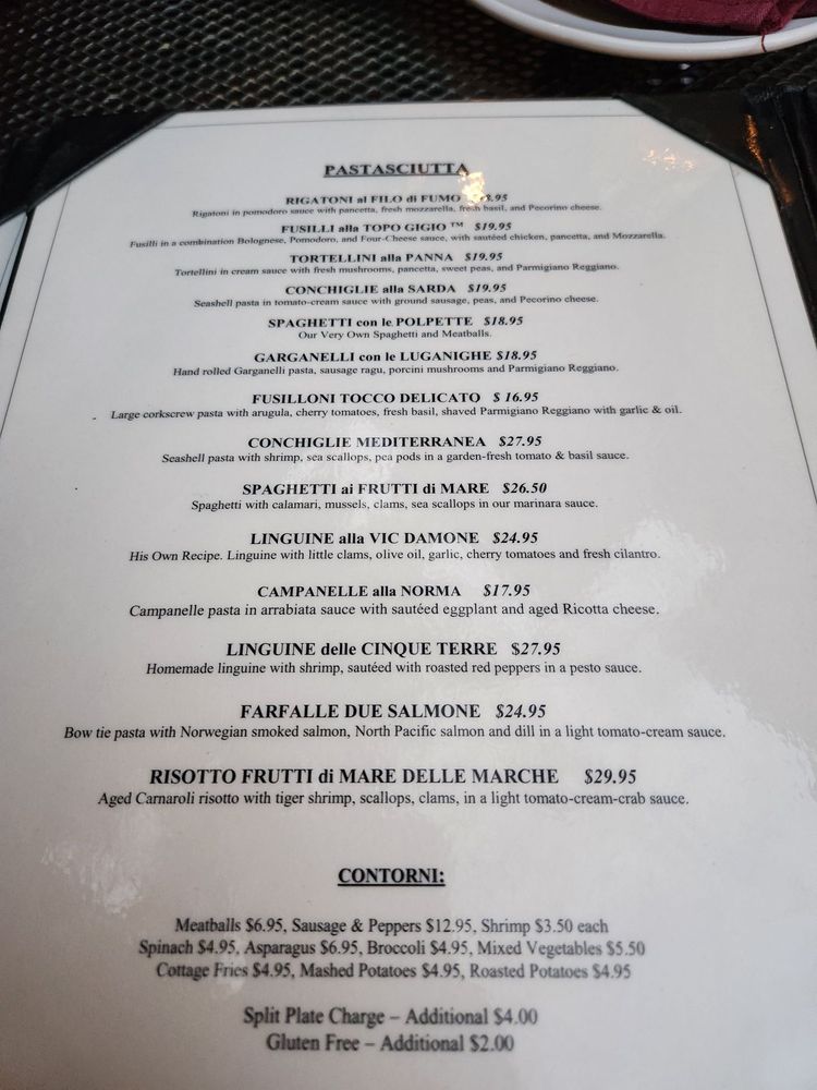 Topo Gigio Ristorante in Chicago is a delightful Italian spot offering a range of mouth-watering dishes including Bruschetta al Prosciutto di Parma, Portobello e Polenta, and Carpaccio alla Piemontese. The Insalate selection is equally impressive with options like La Caprese and Insalata Frutti di Mare. Not to mention the delectable Contorni options like Meatballs and Spinach. Customers rave about the impeccable service and charming ambiance, especially on the outdoor patio. With a diverse menu catering to both traditional and innovative tastes, Topo Gigio Ristorante is a must-visit for Italian cuisine enthusiasts. The cozy yet elegant indoor seating and vibrant outdoor vibes make it a versatile dining destination. Whether you're a pasta lover or seafood enthusiast, Topo Gigio Ristorante promises a memorable culinary experience.